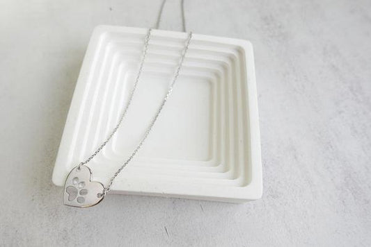 Silver Heart & Paw Pendant Necklace