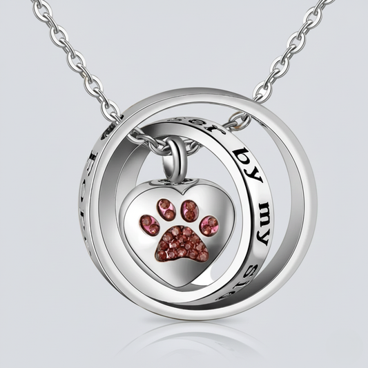 • "No Longer By My Side, Forever In My Heart" – Stainless Steel Urn Paw Necklace