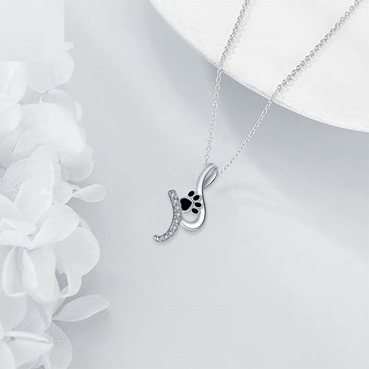 Dog Paw Necklace – Heart Design in Stainless Steel with Zirconia